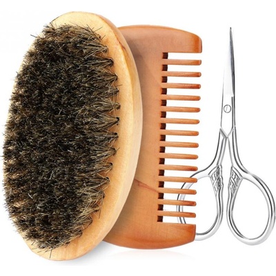 Sada kartáče, hřebene a nůžek na plnovous. Ideální kombinace pomůcek pro vousáče.