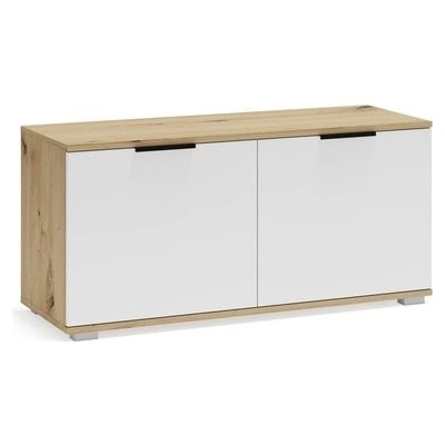 Moderní skříňka z kolekce Clif vyrobená z laminované nábytkové desky v elegantní kombinaci dekorů dub artisan a bílá. Světlé čelní plochy vytvářejí kontrast s teplejším odstínem...