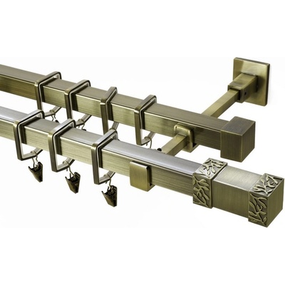 Garnýž hranatá, kovová, dvoutyčová 3,2m délka tyče, barva starozlatá. Hranatá garnýž s koncovkou Roma.