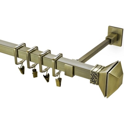 Záclonová tyč hranatá, kovová 3,2m délka tyče, barva starozlatá. Hranatá záclonová tyč s koncovkou Atilla.