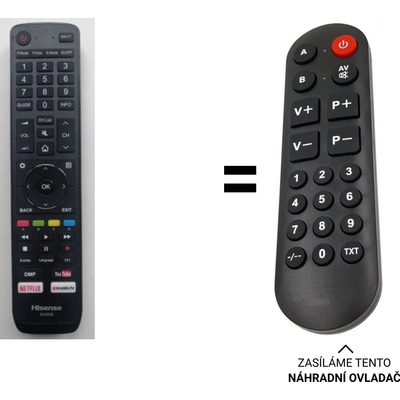 POUZE ZÁKLADNÍ FUNKCE. Hisense náhradní dálkový ovladač. BEZ ZADÁVÁNÍ KÓDŮ. Hisense pro modely EN2BI27H, H32B5620, 55A7100F, 55AE7000F, H55BE7000, H65BE7200 H65B7300,...