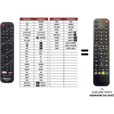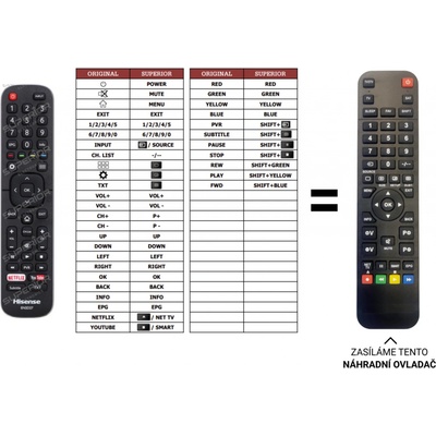 POUZE ZÁKLADNÍ FUNKCE. Náhrada pro Hisense H45N5750, H65N5750, H43N5700, H49N5700, H55N5700, H49N6600, H60N5700, H43N5700, HE43N3500UWTS, H49N5700, HE49N3500UWTS, H55N5700,...