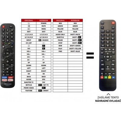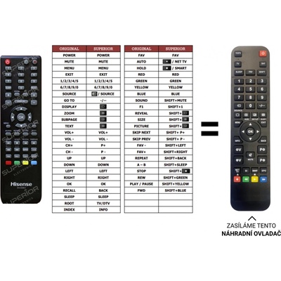 Hisense náhradní dálkový ovladač BEZ NUTNOSTI ZADÁVÁNÍ KÓDŮ