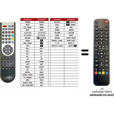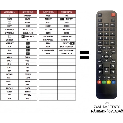 Dálkový ovladač, který slouží jako skvělá náhrada za Váš starý nebo rozbitý ovladač. BALENÍ NEOBSAHUJE BATERIE! Materiál: ABS Baterie: 2 x AAA Kompatibilní s: 43B7100UW,...