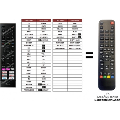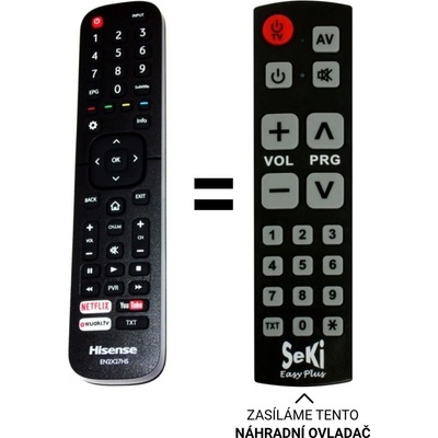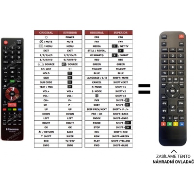 POUZE ZÁKLADNÍ FUNKCE. HISENSE náhradní dálkový ovladač BEZ ZADÁVÁNÍ KÓDŮ například pro modely H55M3300, HE40K3300, H40M3300, H43M3000, HE50K3300, HE55K3300, HE43K300UWTS,...