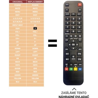 Náhradní dálkový ovladač PREDÁTOR stejného vzhledu i funkcí. NEJVYŠŠÍ KVALITA. ( minimálně jako originál) Určen například pro40A35HUV, 43A6GV, 32A45GV, 50A6GV, 65A6GV, 43A45GV,...
