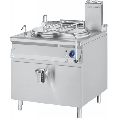 Krytí IPX4, ruční sklápění varné nádoby, celonerezová nádoba, víko nádoby bez otvorů, pracovní deska a ovládací panel z nerezové oceli AISI 304L, tlačítkem ovládané napouštění...