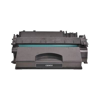 Černá tonerová kazeta CE505X kompatibilní. Vytiskne přibližně 6500 stran A4 při 5% pokrytí. Kompatibilní s:HP LASERJET P2050, HP LASERJET P2055