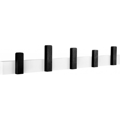 Nástěnný věšák s 5 sklopnými háčky na zavěšení. Materiál: plast Rozměry: 49,5 x 15,2 x 2,5 cm Nosnost: 1 háček 2,2 kg