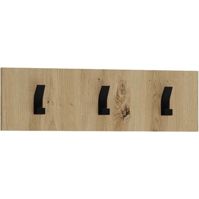 Jednoduchý, závěsný věšák na stěnu CLIF obsahuje 3 kovové háčky na zavěšení. rozměry: 50/15 cm materiál: laminovaná nábytková deska, dub artisan dodáváno v demontu