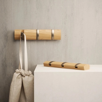 Dřevěný věšák na zeď Umbra Flip 3 s kovovými háčky Designový dřevěný věšák s nerezovými vyklápěcími háčky od firmy Umbra. Je velmi stylové a praktické řešení. Máte málo...