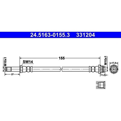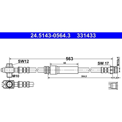 Délka v mm: 563 mm; Doplňující výrobek/info 2: s dutým šroubem; Velikost závitu: M10; Vnitřní závit [mm]: M10x1; MAPP-kód k dispozici; Rozměr klíče 1 [mm]: 12 mm