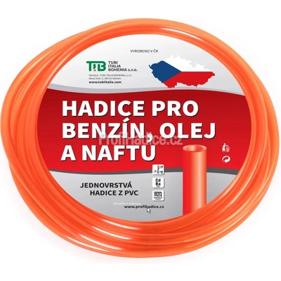 Průhledná PVC hadice bez textilní výztuže pro beztlakou přepravu benzínu. Pracovní teplota -5°C / +60°C.