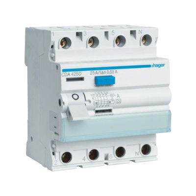 Hager Proudový chránič 4 pól. 25 / 0,03 A, A, CDA425D