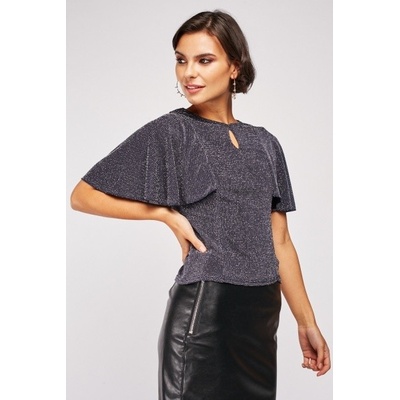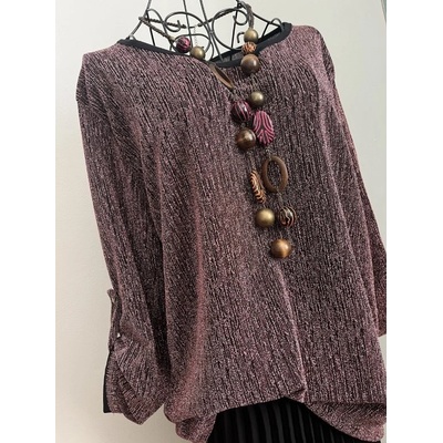 Třpytivá halenka s roll-up rukávy Italy velmi dobrý stav velikost uni (padne až po velikost L) podšitá černou látkou materiál 95% viskóza a 5% elastan náhrdelník není...
