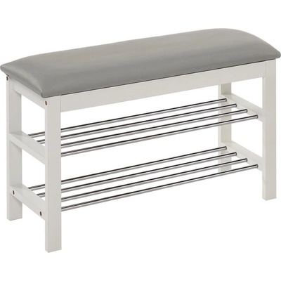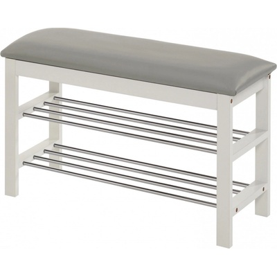 Jednoduchý a praktický botník s dvěma řadami na odkládání bot a čalouněným sedákem. Konstrukce botníku je zhotovena z laminované MDF v bílé barvě, odkládací prostor na boty je z...