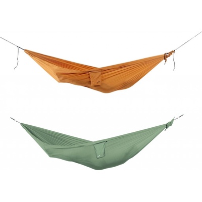 -cestovní hamaka pro dva s maximální nosností 180 kg a zesíleným prošíváním -vyrobeno z pevného materiálu 70D Diamond Ripstop Nylon, který je příjemný na dotek -úložný...