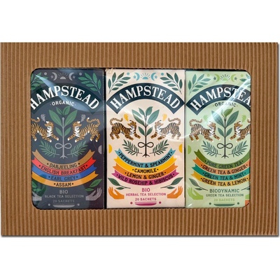 Dárkový balíček selekcí bylinných, zelených a černých čajů Hampstead Tea BIO3× 20 ks Dárkový balíček selekcí bylinných, zelených a černých čajů Hampstead Tea BIO vám umožní...