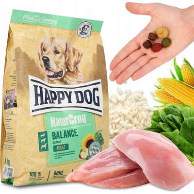 Happy Dog NaturCroq Balance 4 kg Pestré a křupavé kompletní prémiové krmivo pro dospělé psy všech plemen s normální až mírně zvýšenou potřebou energie. - Nová vylepšená receptura s tvarohem, špenátem a červenou řepou - pozitivně působí na trávení a střevní funkce. -...