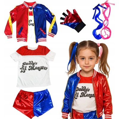 KOSTÝM PŘEVLEK HARLEY HARLA QUEEN STYL GOTAM NA KARNEVAL HALLOWEEN 134 / 140 CM 9-10 LET (S VISAČKOU XL)⭐Sada Harley – inspirovaná stylem komiksů⭐ ⭐Sada obsahuje všechny...