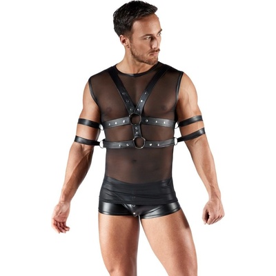 Černá košile bez rukávů s harness Košile bez rukávů, harness a 4 pouta na zápěstí/ruce v černé sadě od Svenjoyment BONDAGE. Přiléhavá košile je vpředu vyrobena z jemného...