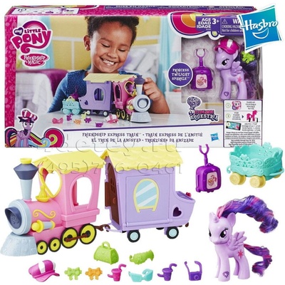 Zažijte dobrodružství s vlakem Friendship Express. Vagónek lze otevřít a proměnit na jídelní vůz. Balení obsahuje: vláček, figurku poníka Princess Twilight Sparkle a 10...