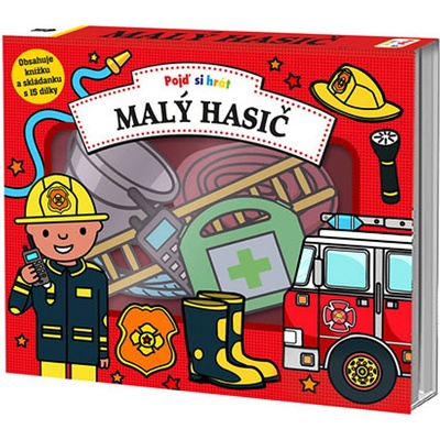 Zábavní box pro nejmenší obsahuje bohatě ilustrovanou knížku se scénami z hasičského života a sadu 15 nezbytností pro každého malého požárníka. Dokážeš dílky skládanky umístit...