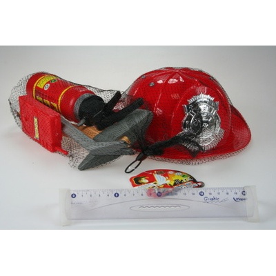 Hasičská sada obsahuje - helmu, sekeru, vysílačku, odznak, hasičák a páčidlo. Věk: 3+