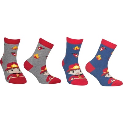 Obrázkové ponožky pro chlapce, vzor hasič, mají jemný lem, jemně šitou špici a jsou z měkkého materiálu příjemného na dotek.