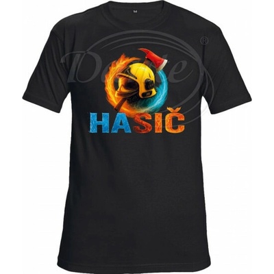 Moderní černé tričko s dominantním motivem žluté hasičské přilby a sekery, obklopených dynamickým kruhem ohně a vody. Pod motivem je nápis „HASIČ“, provedený v kontrastní...