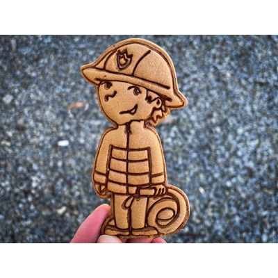 Sada 2 ks plastových vykrajovátek na téma Hasič Sam. Rozměry: 8,5 x 5,5 cm a 9 x 7,5 cm.