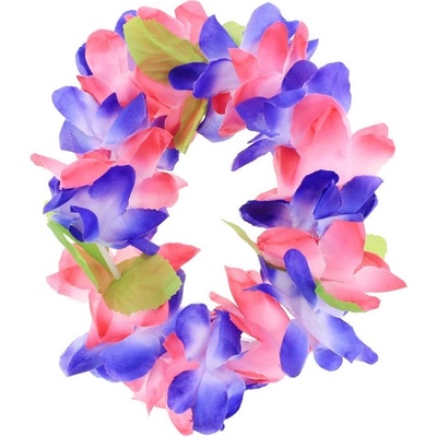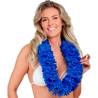 Květinový havajský věnec. Vhodný doplněk pro tematick barevnou, nebo letní havaj párty. Materiál: 90% polyester,10% polypropylen Barva: modrá