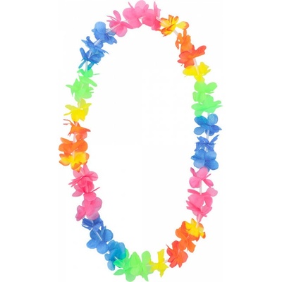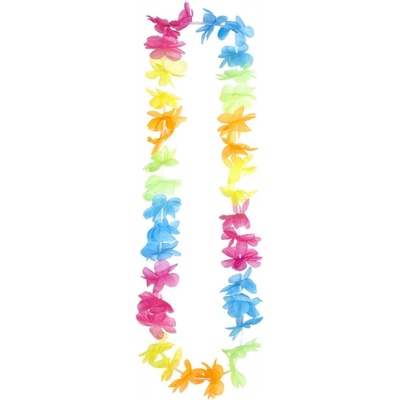 Havajský věnec pestrobarevný na Hawaii Aloha párty. Havajský karnevalový doplněk od firmy Godan.