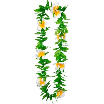 Havajský věnec Lulani bílý Přineste na párty havajskou tropickou atmosféru s tímto roztomilým květinovým věncem. Havajský věnec má krásné bílé květy a tropické listy pro extra...