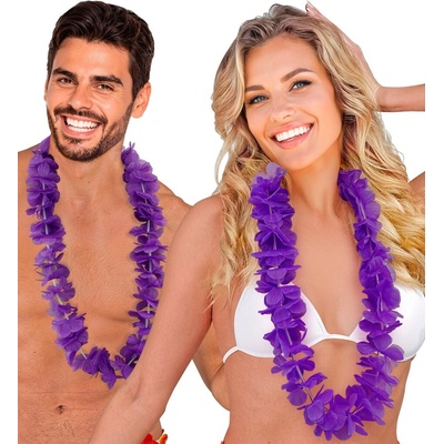 Havajský věnec fialový karnevalový doplněk hustý havajský věnec ke kostýmu Waikiki. Karnevalové doplňky značky Widmann pro Hawaii párty.
