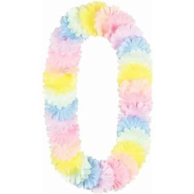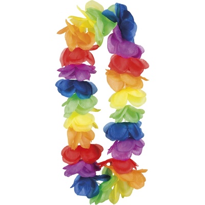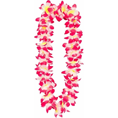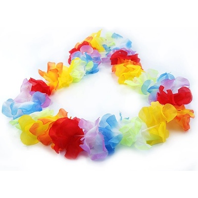 Havajský barevný náhrdelník tvořený z okvětních plátků, které jsou odděleny průhlednými trubičkami, aby zůstaly rovnoměrně rozprostřeny po celém obvodu v délce 120 cm.