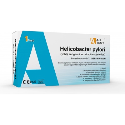 H. Pylori test - AllTest - 1ks Antigenní test pro samotestování zaměřený na detekci přítomnosti Helicobacter pylori ve stolici. Výsledek do 10 minut. Vhodné pro rychlou domácí orientaci při podezření na infekci H. pylori. 📄 Příbalový leták | 📑 Prohlášení o shodě | 📑...