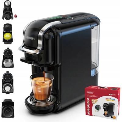 HiBREW H2B 5 v 1 kávovar na kapsle (černý) Vychutnejte si ráno horkou a aromatickou kávu. HiBREW H2B má tlak 19 barů a jmenovitý výkon 1450 W. Kromě toho je kompatibilní s různými typy kapslí. Kromě toho umožňuje nastavit intenzitu nápoje a je vybaven nádržkou na vodu...