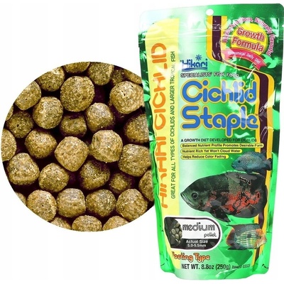 HIKARI Cichlid Staple Medium 250gKrmivo pro cichlidy a velké tropické ryby Specifikace produktu - základní každodenní krmivo pro cichlidy i jiné velké tropické ryby - obsahuje všechny základní nutriční složky, které Vaše ryby potřebují, aby zůstaly zdravé - vysoký...