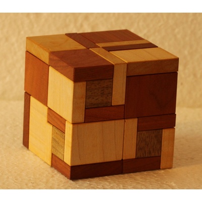 Hlavolam Handed Halfcubes Obtížnost: 5 (1-lehké, 5 -těžké) Rozměry: 6,5x6,5x6,5 cm Počet dílků: 8 Materiál: dřevo Cíl: sestavit krychli a další tvary