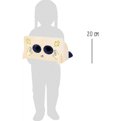 Různé předměty ukryjte do látkového pytlíku za dřevěnou stěnou. Pytlík je opatřen zipem, pro snadnější vkládání předmětů. Děti vloží ruce do textilních rukávů a podle hmatu se...
