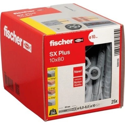 Fischer SX Plus 10x80 mm (568110), balení 25 ks Hmoždinky vhodné převážně do plných materiálů, ve kterých perfektně drží díky rozpínání do 4 stran. Oproti předchozí verzi...