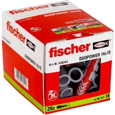 Fischer DUOPOWER 14 x 70 mm, balení 20 ks Hmoždinky vhodné do pórobetonu (ytongu), dutých cihel i plných materiálů. Tyto chytré hmoždinky se deformují dle typu stavebního...