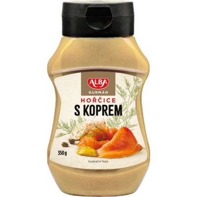 -- Hořčice s koprem v tubě, 350 g.Nosnou chutí hořčic je osvědčená říznost plnotučné hořčice, nicméně v těchto provedeních ozvláštněná vybraným kořením a bylinami. Vhodné ke...
