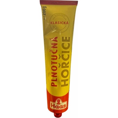 Tradiční oblíbená chuť. Hustá krémová konzistence. Složení: pitná voda, hořčičné semeno 18%, cukr, kvasný ocet lihový, jedlá sůl, barvivo: riboflavin, karamel E150c; koření....