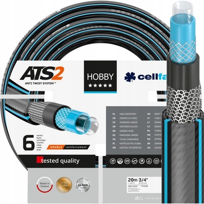 Zahradní hadice na vodu 6 vrstev s opletem 3/4" 20m silná hadice HOBBY ATS2 CELLFAST Extrémně odolná zahradní hadice HOBBY ATS2, vyrobené z bezpečné suroviny, o vysokou míru...
