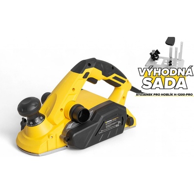 Výhodná sada - hoblík + stojánek; vhodné pro profesionální využití; příkon 1200 W; hoblovací šířka 110 mm; hloubka řezu 3,5 mm; nastavení hloubky; aretace spínače; šikmé...