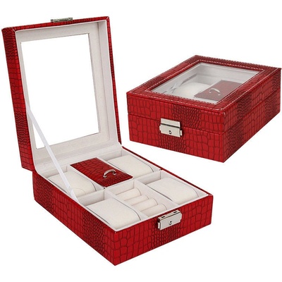 Kazeta v imitaci krokodýlí kůže pro přehledné uložení hodinek a prstenů. Víko kazety je prosklené. Do kazety lze uložit 8 hodinek nebo náramků. Po stranách jsou v kazetě sloty...