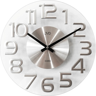 Skleněné nástěnné hodiny JVD s kovovými doplňky zaujmou novodobým a originálním designem. - stříbrná barva
