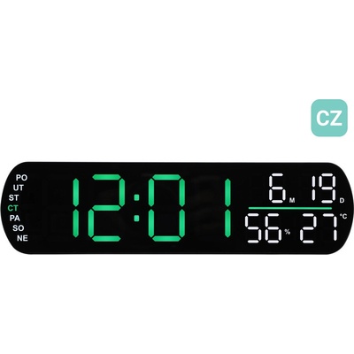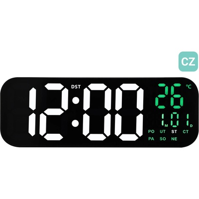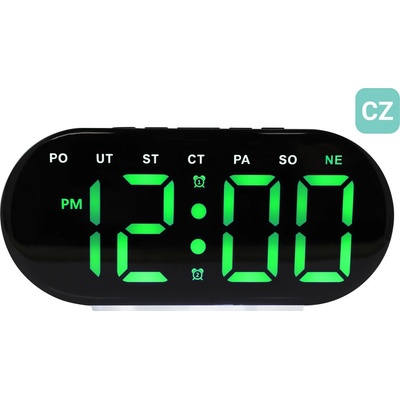 Stylový digitální budík s jasně zelenými LED číslicemi nabízí perfektní čitelnost ve dne i v noci. Díky modernímu oválnému designu a přehlednému zobrazení dnů v týdnu v češtině...